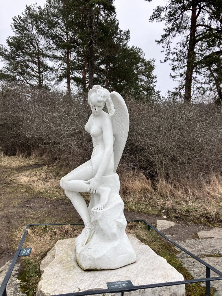 Vi valgte denne han å ikke benytte oss av, hverken kafé-tilbudet eller overnattings muligheten, men gikk heller nedover åsen og inn i skulpturparken.
