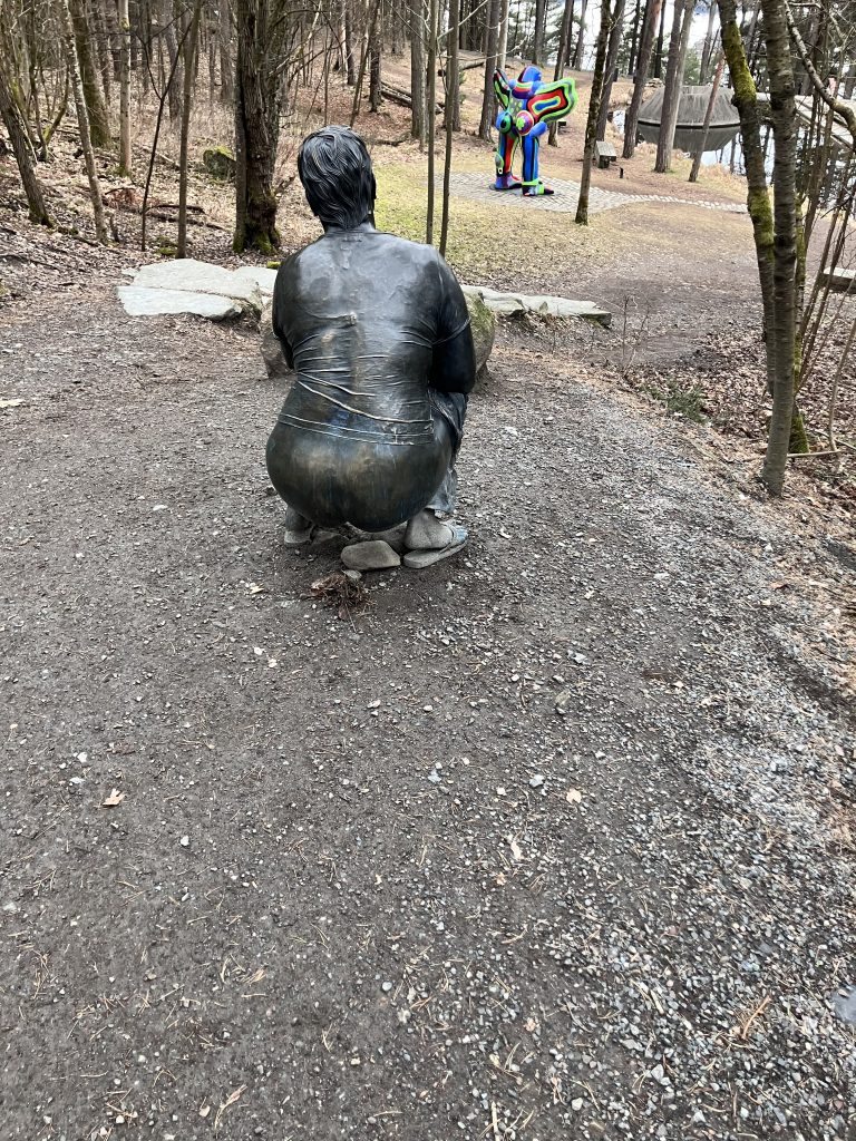 Det skulle vise seg at åsen, kanskje ikke overraskende, skulte mange flere «hemmeligheter» en vi hadde sett for oss. Jeg hadde jo lenge hatt et ønske om å gå igjennom for å oppleve skulpturparken, men Lothar var nok mest opptatt av menyen på Ekebergrestauranten….